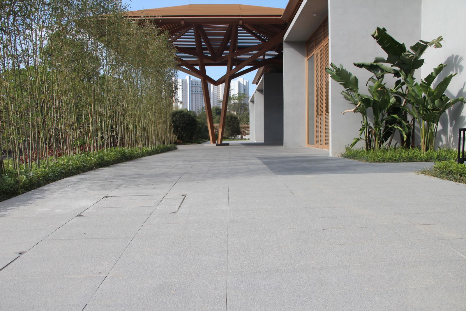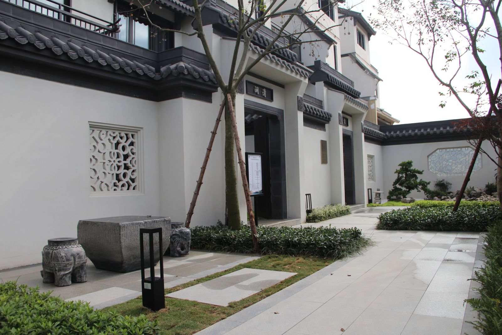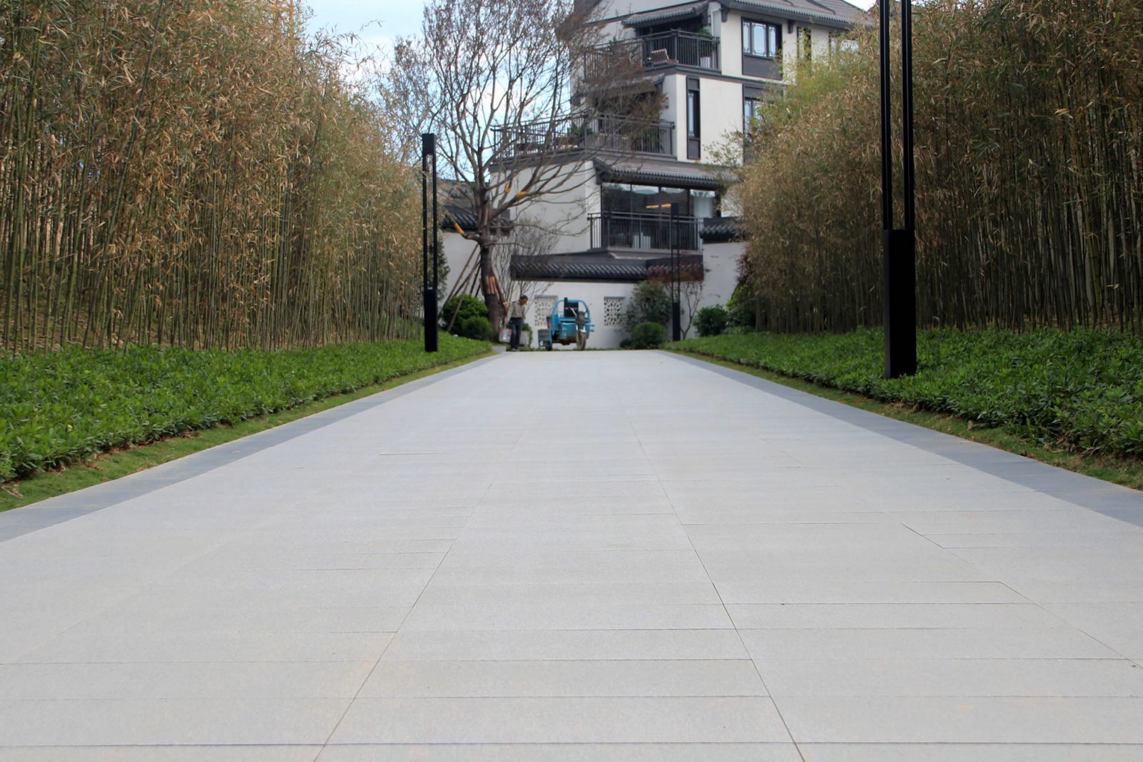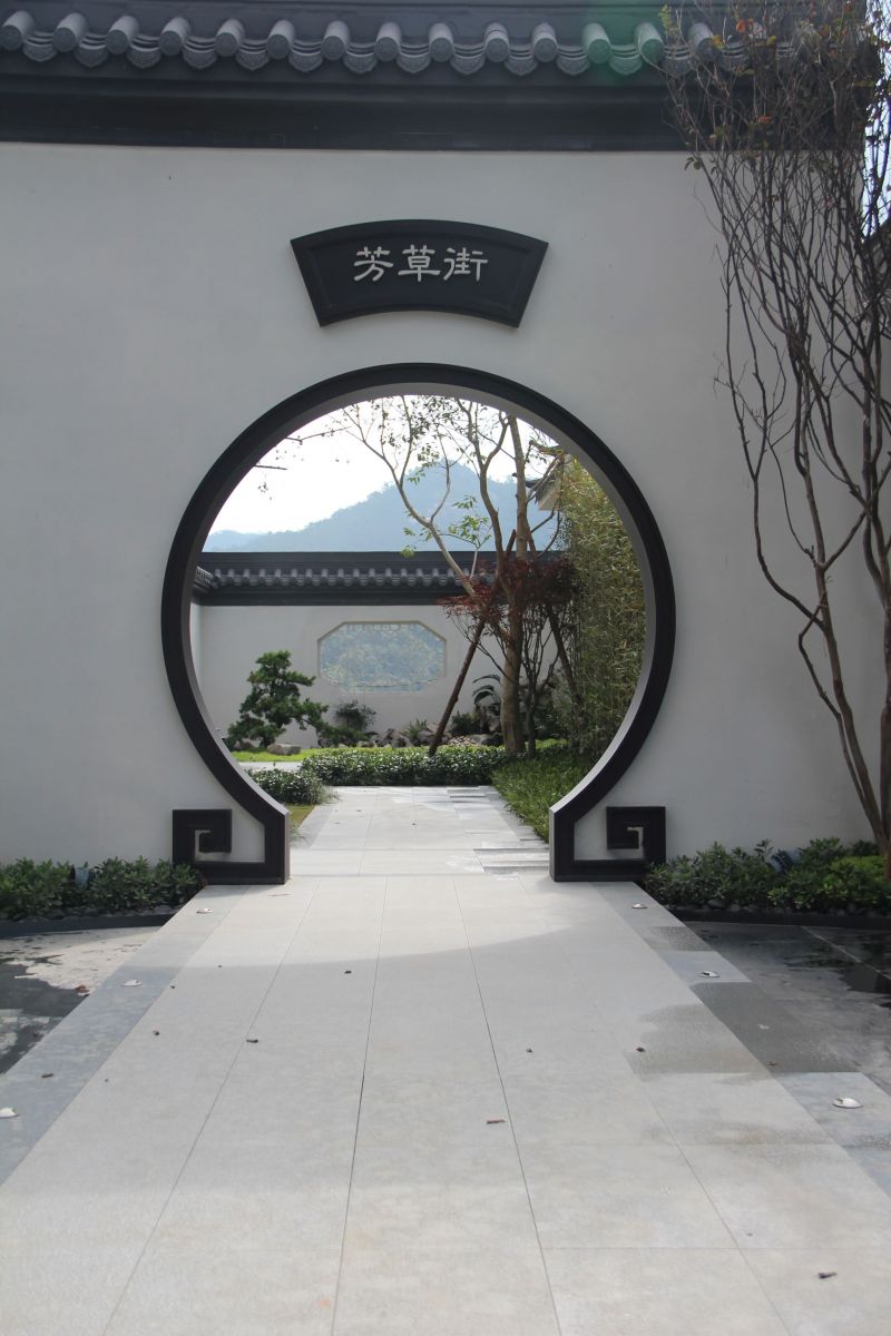 區(qū)域內廣場、水景、汀步及別墅庭院采用協進地鋪石瓷磚裝飾,