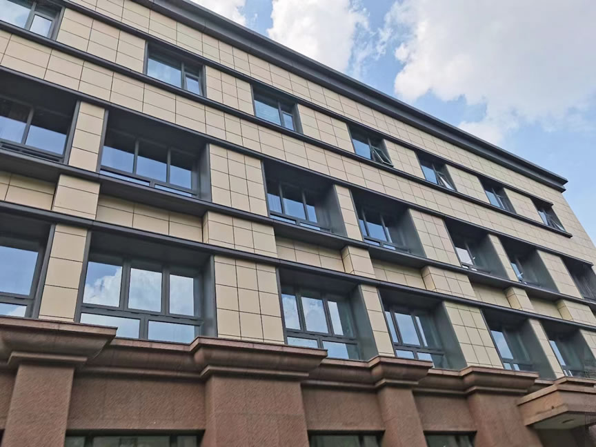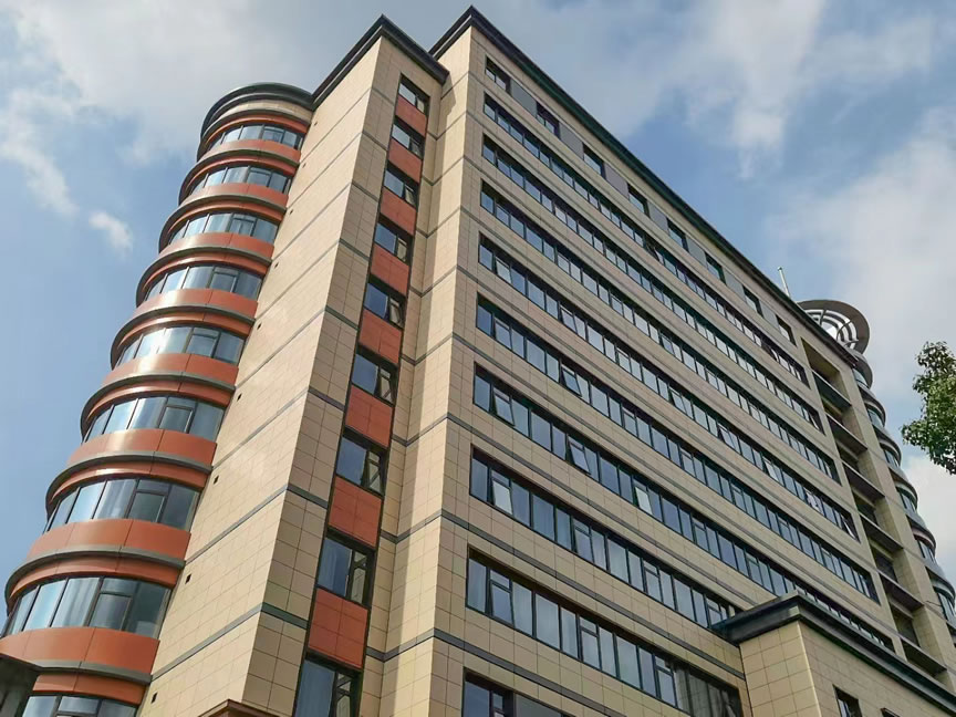 項(xiàng)目位于上海新村路,建筑面積近10萬(wàn)平方米,為三級(jí)甲等綜合性醫(yī)院。 醫(yī)院外立面使用協(xié)進(jìn)純色陶瓷薄板鋪貼。 產(chǎn)品色澤均勻細(xì)膩,效果整潔大氣。