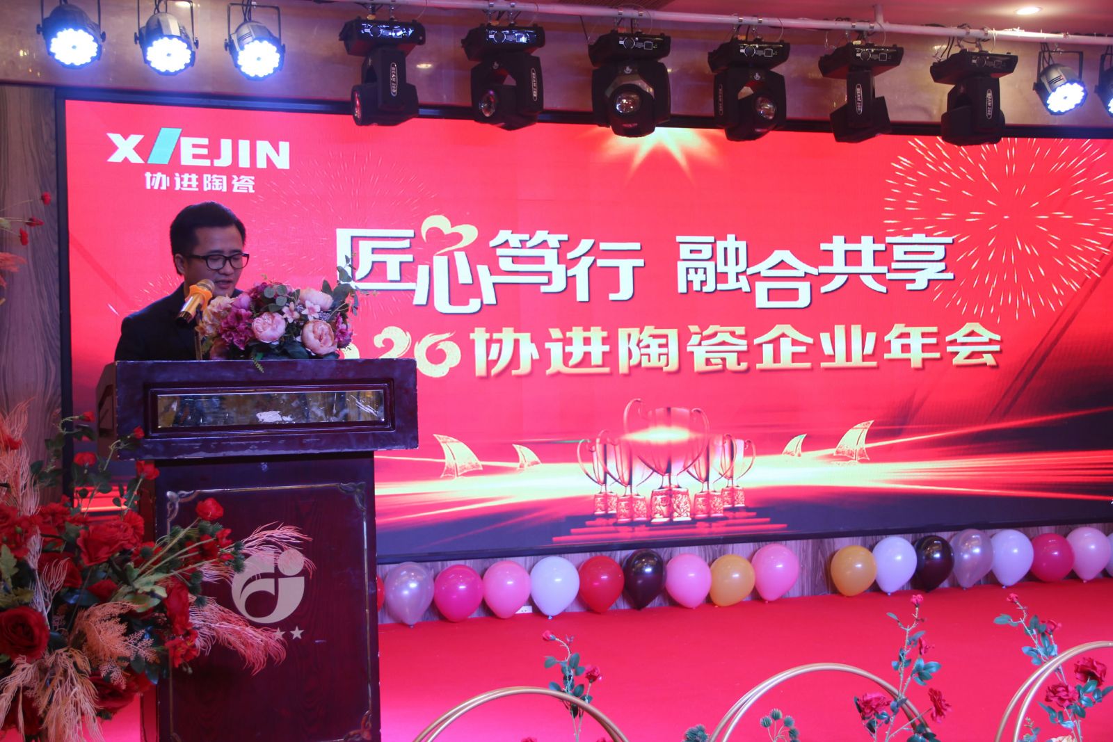 年會(huì)上,王少華總經(jīng)理致2020年新年賀詞,回顧2019,展望2020。王總表示,協(xié)進(jìn)公司經(jīng)過(guò)過(guò)去一段時(shí)期建陶行業(yè)轉(zhuǎn)型升級(jí)的洗禮和產(chǎn)業(yè)結(jié)構(gòu)調(diào)整的錘煉,有信心迎接行業(yè)進(jìn)入綠色環(huán)保、智能制造、個(gè)性化定制和家居一體化高質(zhì)量發(fā)展的新一輪挑戰(zhàn)。在新的一年里,公司期盼與全體協(xié)進(jìn)人、合作伙伴、社會(huì)各界繼續(xù)攜手努力奔跑,只爭(zhēng)朝夕,追夢(mèng)前行,不負(fù)韶華!