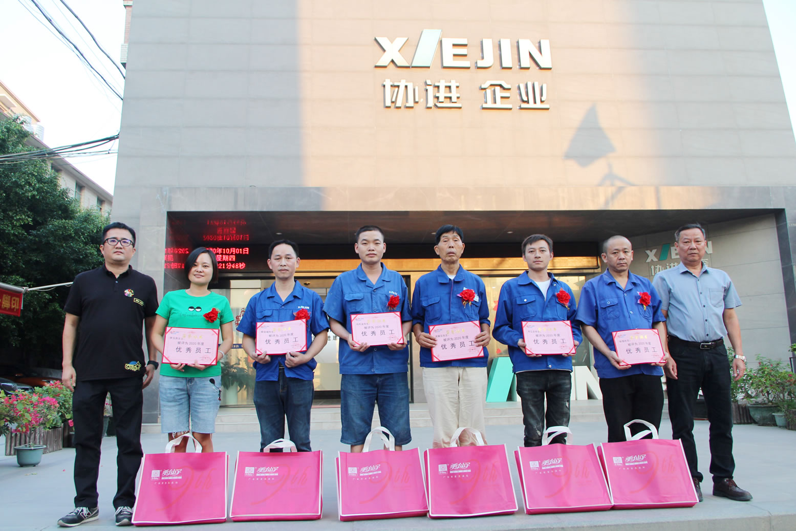 王少華總經(jīng)理等公司領(lǐng)導(dǎo)為34名2020年度優(yōu)秀員工頒發(fā)獎狀獎品,借此感謝全體協(xié)進(jìn)人一年來的辛勤勞動,同時祝愿偉大的祖國繁榮昌盛、國泰民安。