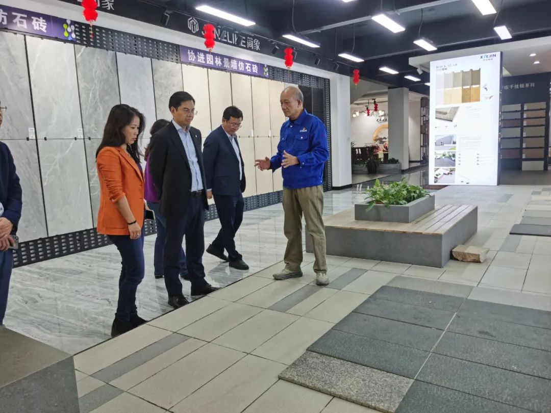 周會(huì)長一行在南安協(xié)進(jìn)公司董事長王家助的介紹下一邊了解企業(yè)30年來的發(fā)展歷程,一邊參觀產(chǎn)品展廳,對(duì)協(xié)進(jìn)陶瓷在大規(guī)格薄板、大板、陶瓷薄板復(fù)合保溫一體板、地鋪石等綠色節(jié)能新產(chǎn)品的研發(fā)生產(chǎn)深入了解。希望利用協(xié)會(huì)在建筑開發(fā)產(chǎn)業(yè)鏈上的優(yōu)勢和資源,通過此次的商務(wù)考察活動(dòng),尋求開拓加拿大和北美市場的合作。