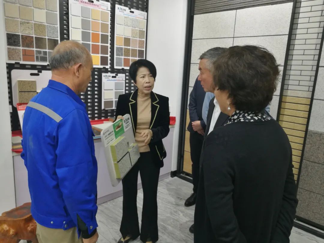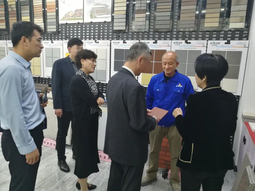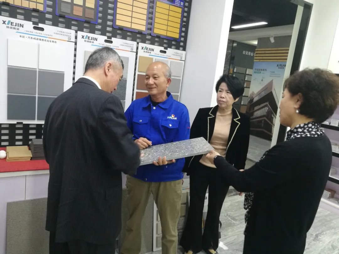 繆會長一行在王家助董事長、楊寶貴副董事長、王少華總經(jīng)理的介紹下饒有興趣地參觀了產(chǎn)品展廳,對協(xié)進(jìn)研發(fā)生產(chǎn)的一系列大規(guī)格薄板、大板、陶瓷薄板復(fù)合保溫一體板、地鋪石等綠色節(jié)能新產(chǎn)品,以及諸多產(chǎn)品在泛家居領(lǐng)域的創(chuàng)新與運(yùn)用給予肯定,并提出寶貴意見。