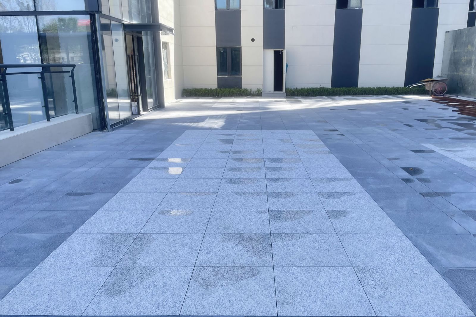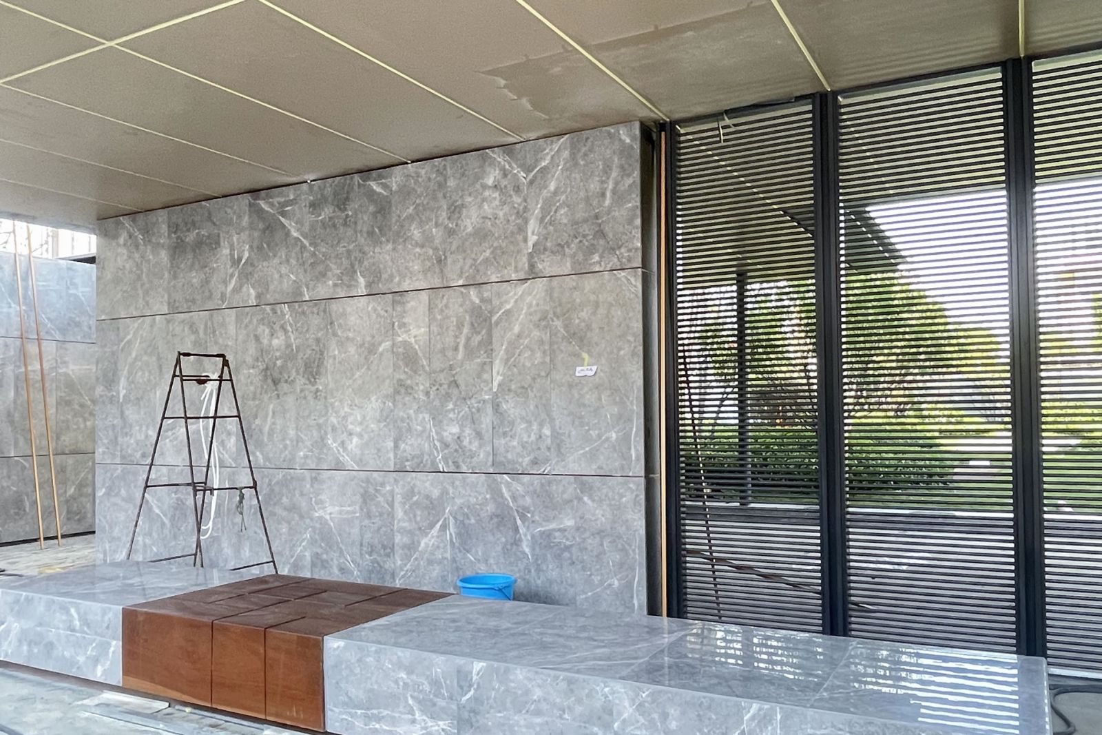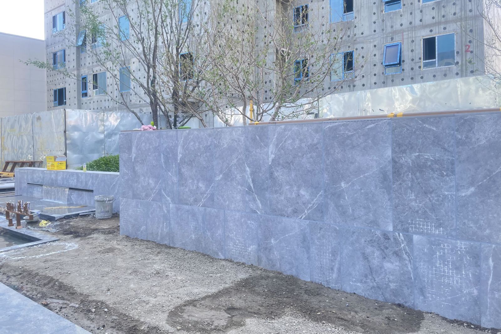 協(xié)進(jìn)厚板工程案例——烏魯木齊萬科天山府 該項(xiàng)目是一座綜合性住宅小區(qū),其園林設(shè)計(jì)采用了多種顏色的協(xié)進(jìn)厚板,呈現(xiàn)出豐富多彩的景觀效果。 其中,地面使用了浪花白和夜里雪、芝麻灰系列混和鋪貼,此外,在景墻的設(shè)計(jì)中,維納多米黃和愛馬仕灰色的景墻磚也被巧妙地應(yīng)用,使整個(gè)建筑物外觀更加美麗。