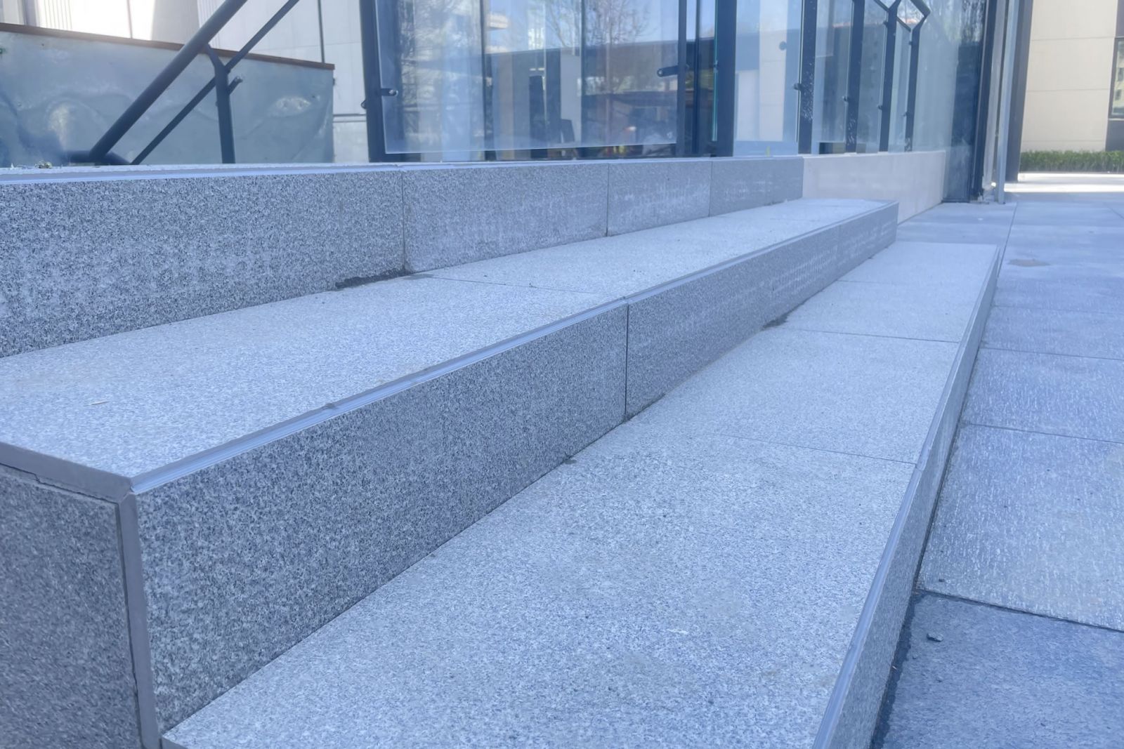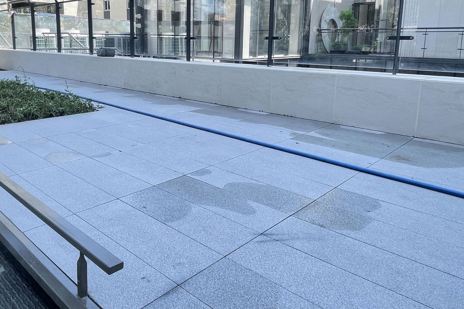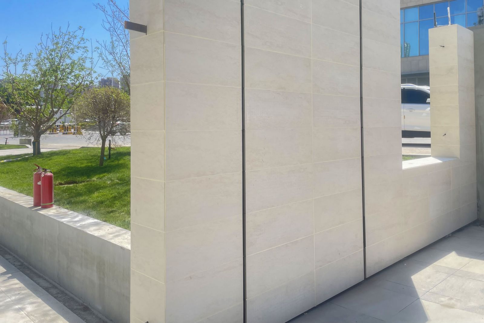 協(xié)進(jìn)厚板工程案例——烏魯木齊萬科天山府 該項(xiàng)目是一座綜合性住宅小區(qū),其園林設(shè)計(jì)采用了多種顏色的協(xié)進(jìn)厚板,呈現(xiàn)出豐富多彩的景觀效果。 其中,地面使用了浪花白和夜里雪、芝麻灰系列混和鋪貼,此外,在景墻的設(shè)計(jì)中,維納多米黃和愛馬仕灰色的景墻磚也被巧妙地應(yīng)用,使整個(gè)建筑物外觀更加美麗。
